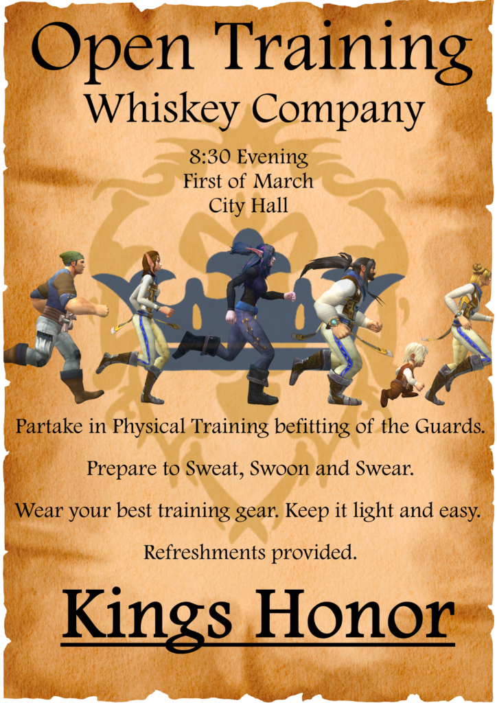First of March – Training – A PUBLIC Training will take place. Wear suitable clothing, and partake in the Physical Guard Training.