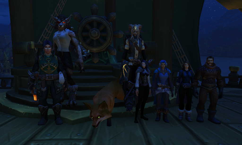 Twenty-Seventh of February – Outting – A Massive thank you to Tinka Endercull Barenson for taking Whiskey Company out for a social outting. We were taken to Kul Tiras for a boat ride, learning about the local area, before stopping off at a very tall mountain, and taking a glide down, and back onto boats. We then had a tour of a Navy boat by the wonderful Lieutenant Commander Ficher, then back to Boralus for a drink.