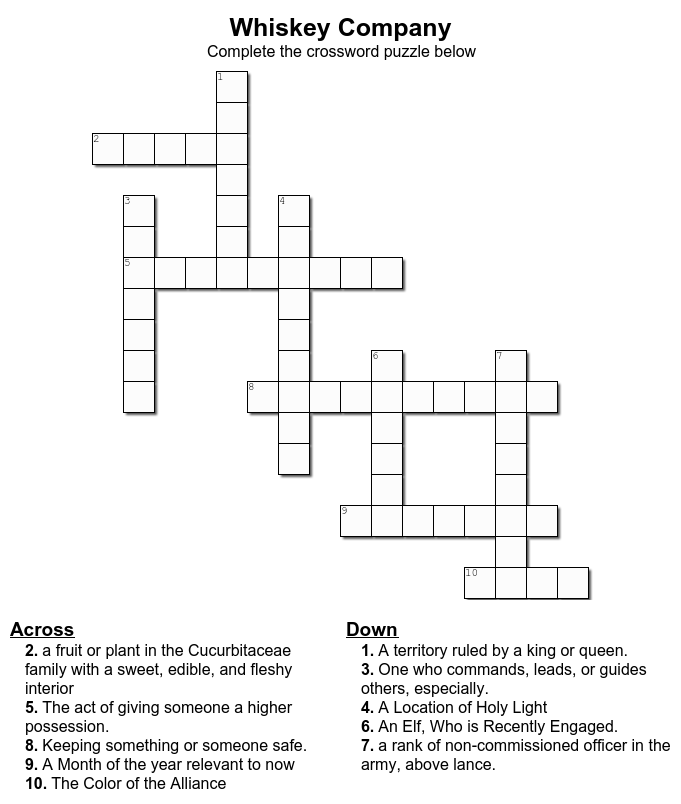 All puzzles are related to Whiskey Company, The Alliance, Guard and Military Forces. There may be portions difficult for those outside of Whiskey to get. You are welcome at City Hall for help.